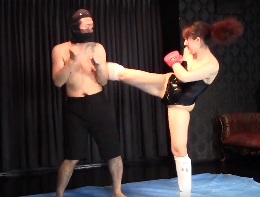 今回は、ミカコ動画のスタート初編でキックボクシングでM男をボコボコにしちゃう内容ですね。