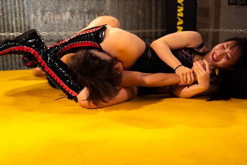 最後は太ももにノックアウトされ、巨尻で騎乗されるという
