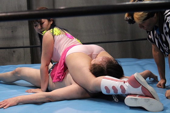 グロッキーなチュンを69絞めで絞め落とす!試合後さらに暴走しロープに