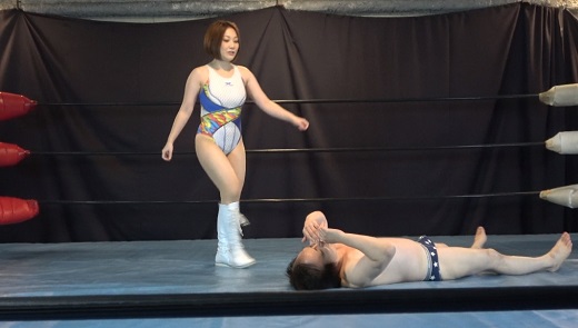 その彼女がミックスプロレスでてるてる坊主をボコボコにしてしまします!