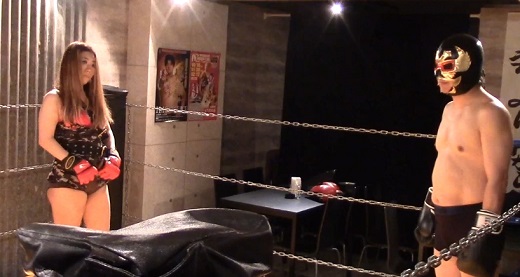 可憐な瑠伊が屈強なブルマスクをドミネート!