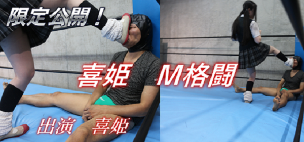 喜姫がむっちりとした太ももで、男達に勝利していく。 美しい女子レスラーの太ももでギブアップする男達に屈辱を味わらせる
